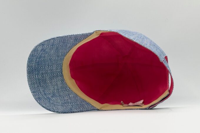 Cette casquette est proposée avec une doublure en coton groseille et une lanière réglable fermée par 2 pressions en laiton.
