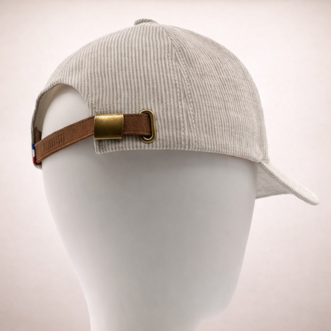 Ce modèle se règle au dos par une très élégante lanière cuir naturel  embossée Headoniste, comprend une doublure contrecollée en coton léger pour plus de confort.